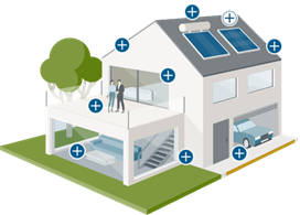 Photovoltaik-Anlagen wandeln Sonnenenergie in Strom um. Ein optionaler Stromspeicher sorgt zudem dafür, dass tagsüber erzeugter Solarstrom zum Beispiel nachts genutzt werden kann.